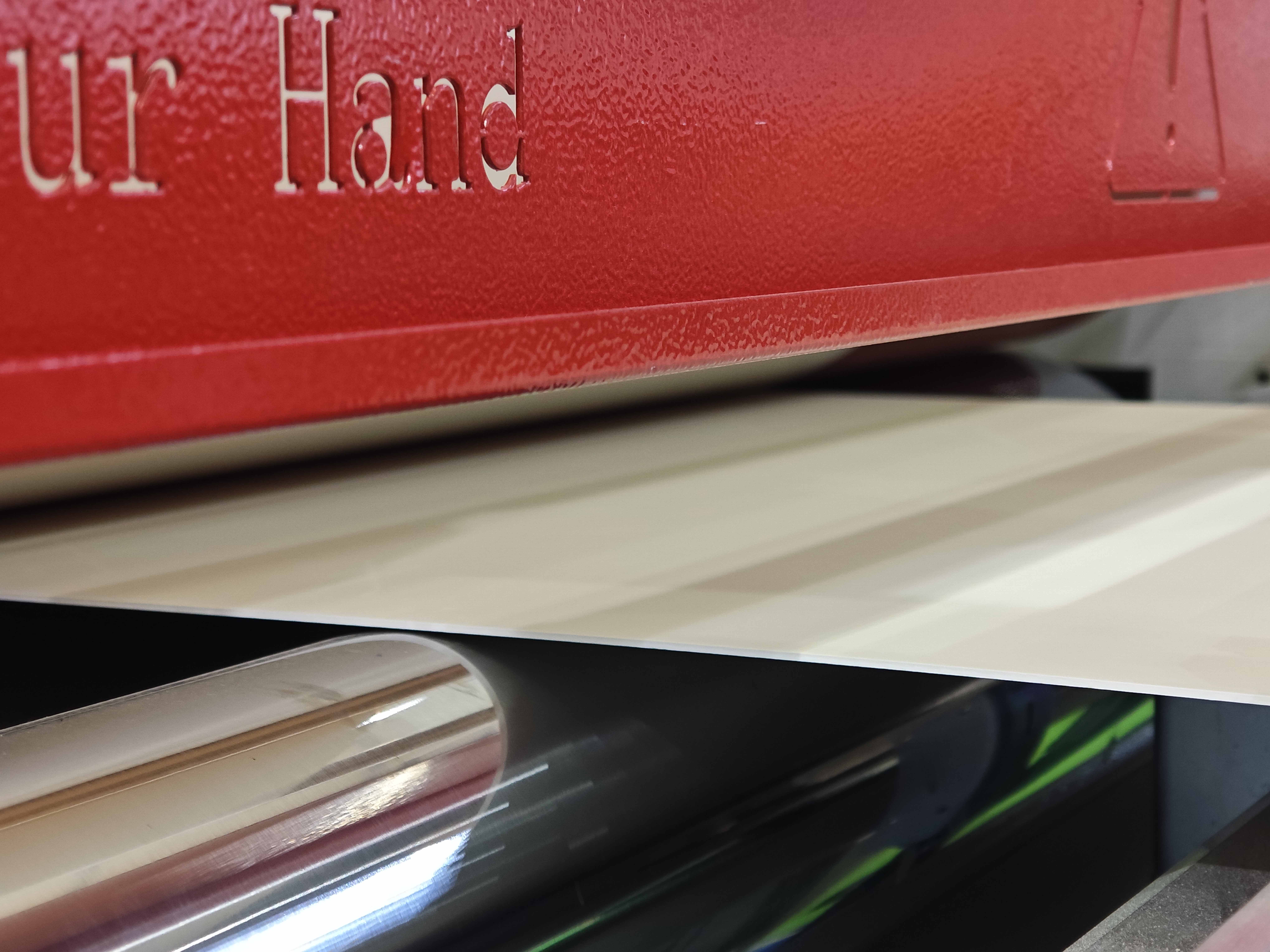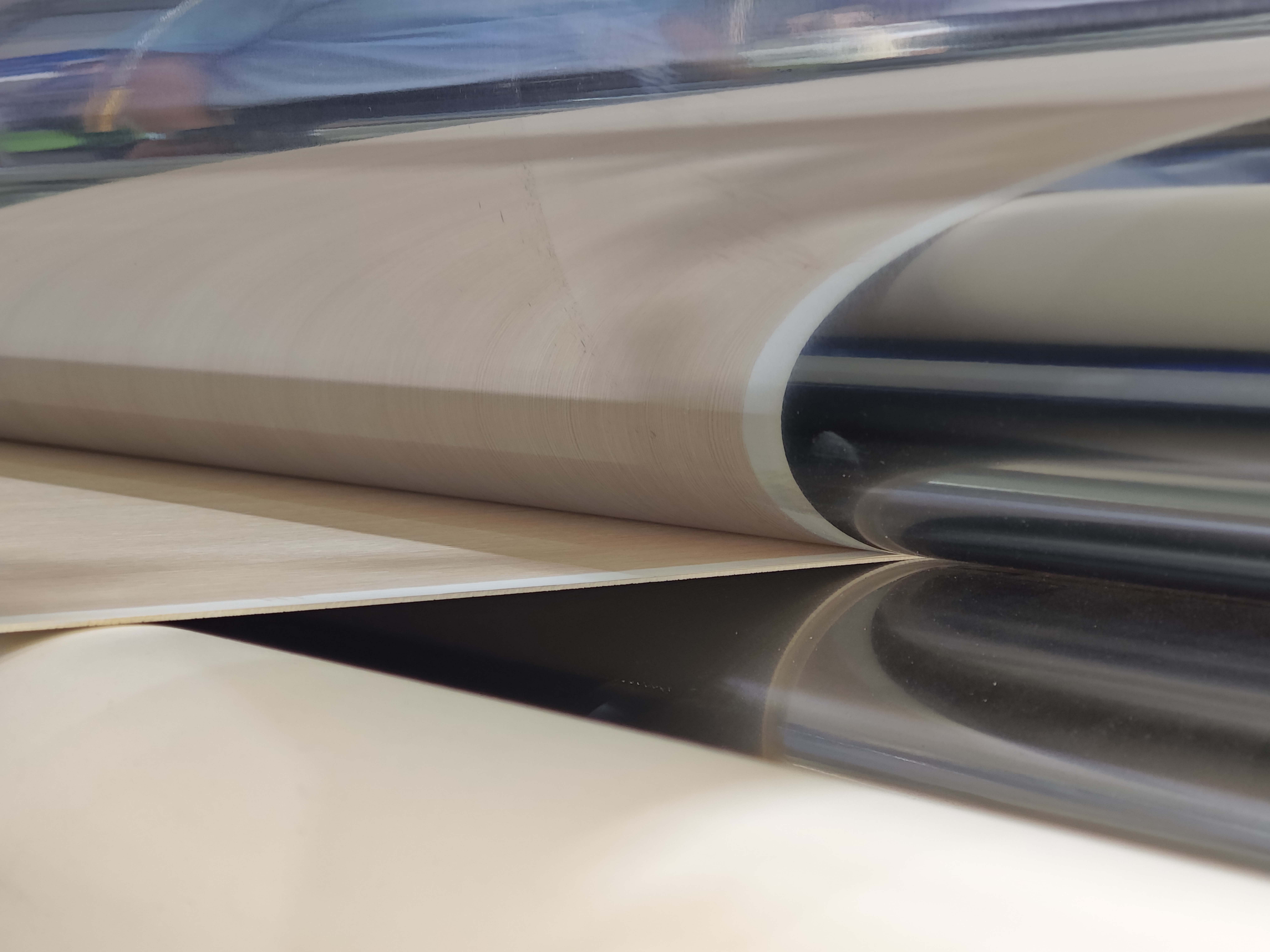 【涂飾仿真同步壓紋生產線】: SPC地板、PET地板可以采用設備實現精準定位,較傳統工藝提升5倍,圖案和紋理的天然仿真還原度達90%以上,以極低的成本,復刻實木地板的質感與紋理,產品品質不變,減少設備的投入,快速占領市場。